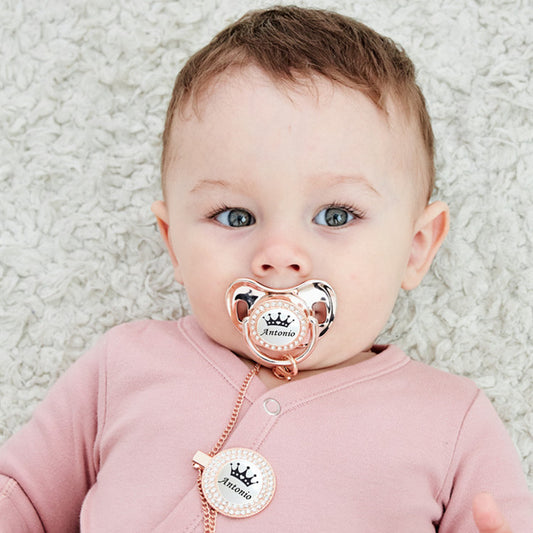 MIYOCAR Luxurious bling Transparent Sparkling Rhinestone Custom baby pacifiers and clips/holder kit with name for boy and girl gift