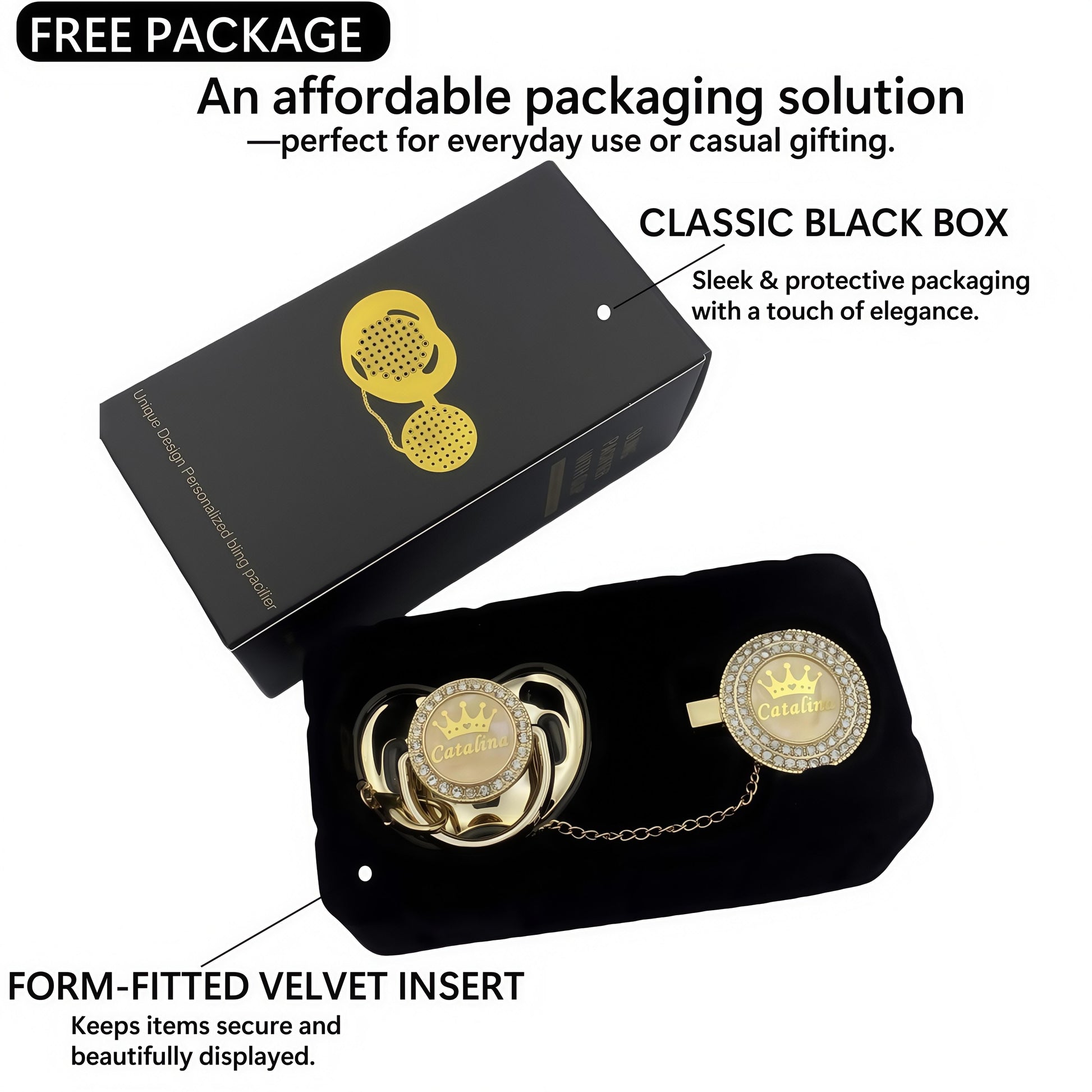 MIYOCAR Custom Gold Bling Diamond Baby Pacifier with Clip Set Personalized for Newborns and Babies Personalized Baby Bling Pacifier gold pacifier