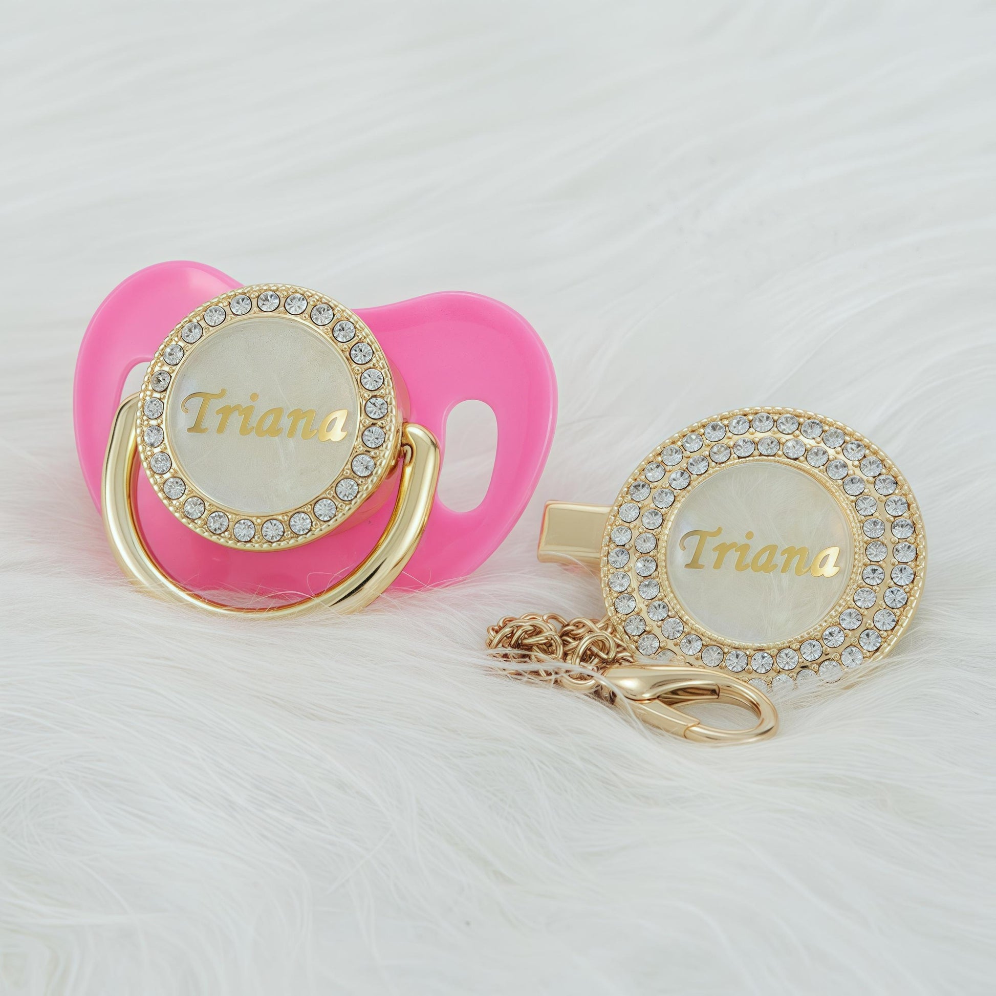 HIGH QUALITY – Pacifier and Clip are handcrafted with crystal rhinestones. The Pacifier clip will attach to all standard pacifiers.